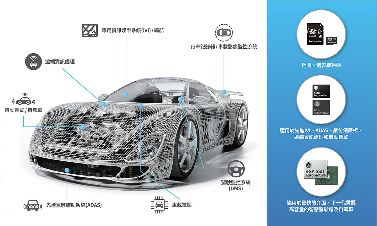 未來的自動駕駛,對快速、大容量儲存的需求推動嵌入式產品的發展,同時也需要更高階的傳輸系統及更大的儲存單元。