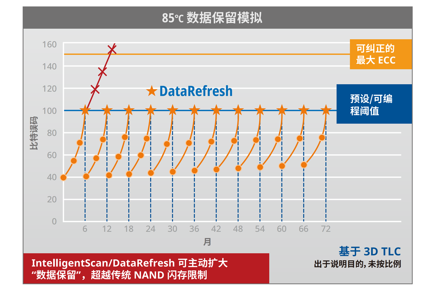 图 2:IntelligentScan™ 和 DataRefresh 确保执行强大的数据丢失和纠错,延长 SSD 使用寿命。
