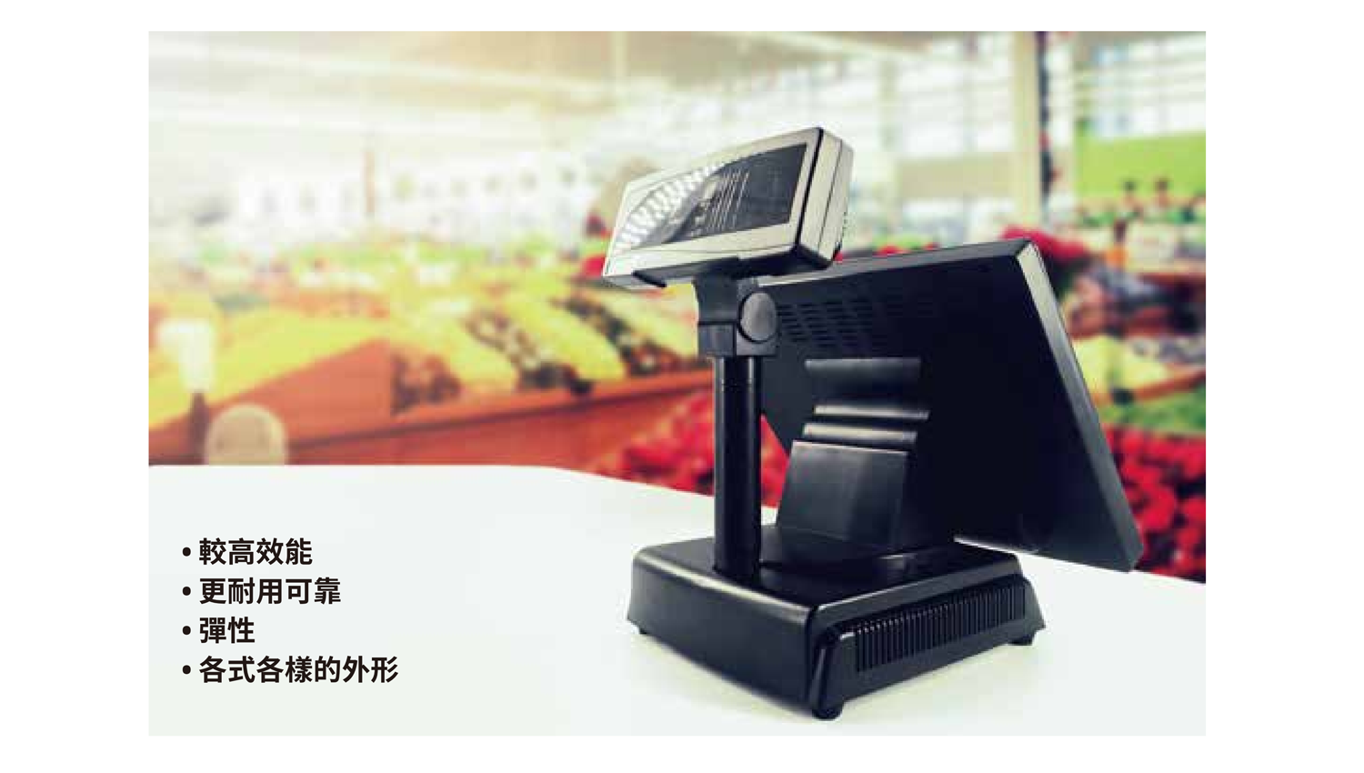 對零售儲存而言,沒有單一的解決方案。一台 POS 終端機有不同的需求,包含手持式條碼掃描器和電子看板的 不同需求。然而,有些特點是所有應用通用的,例如有效性、資料完整性、安全性與穩健性。與硬碟不同的是, NAND 儲存具有彈性來確保其能被量身訂做,讓每一種應用都能在成本、效能、耐用度及使用度上獲取最大平衡。