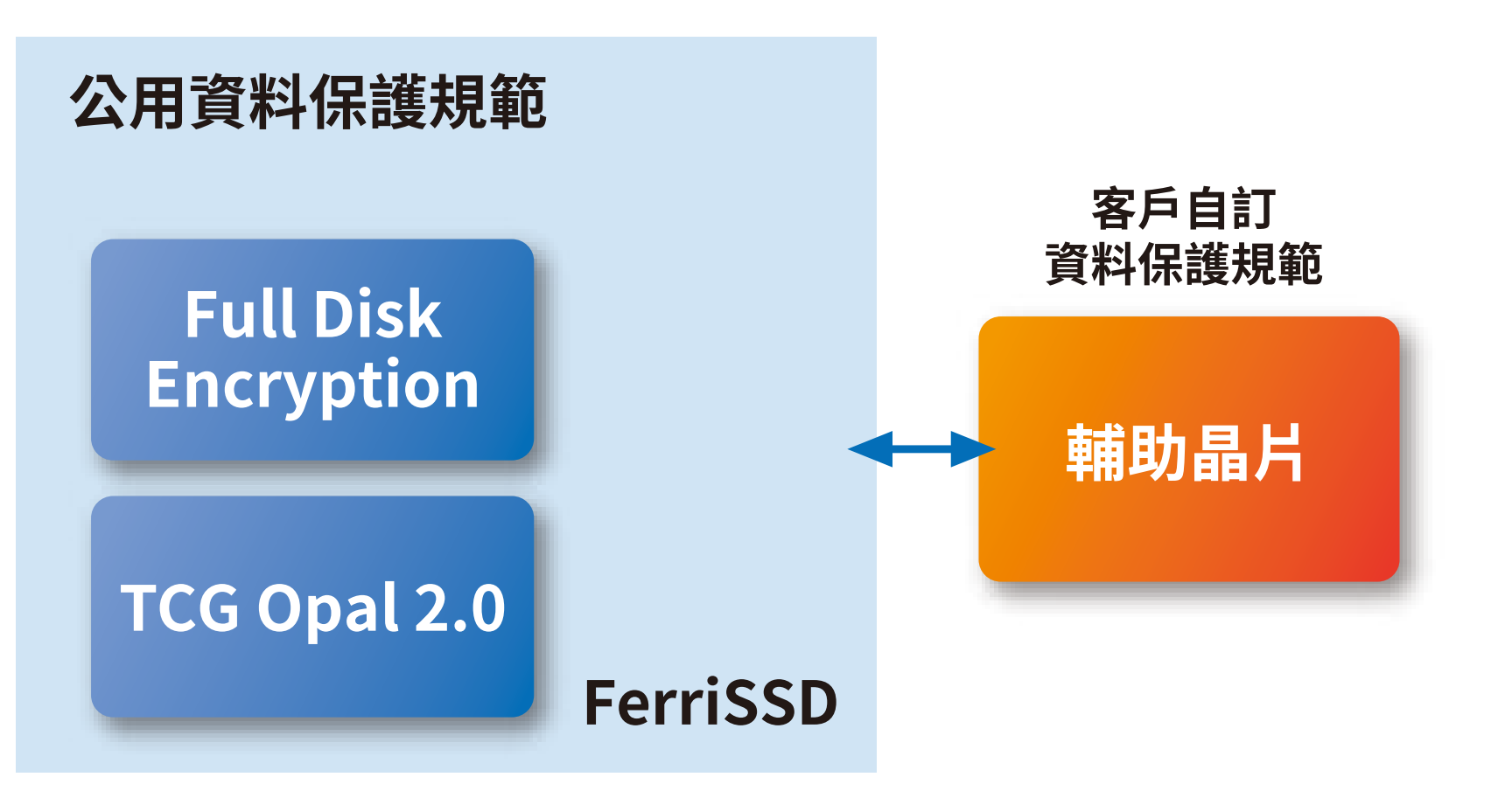 經由 TCG OPAL 可使用全磁碟加密。要擁有更多額外的安全性,可 增加選配的協同晶片強化敏感的使用者資料之安全性。