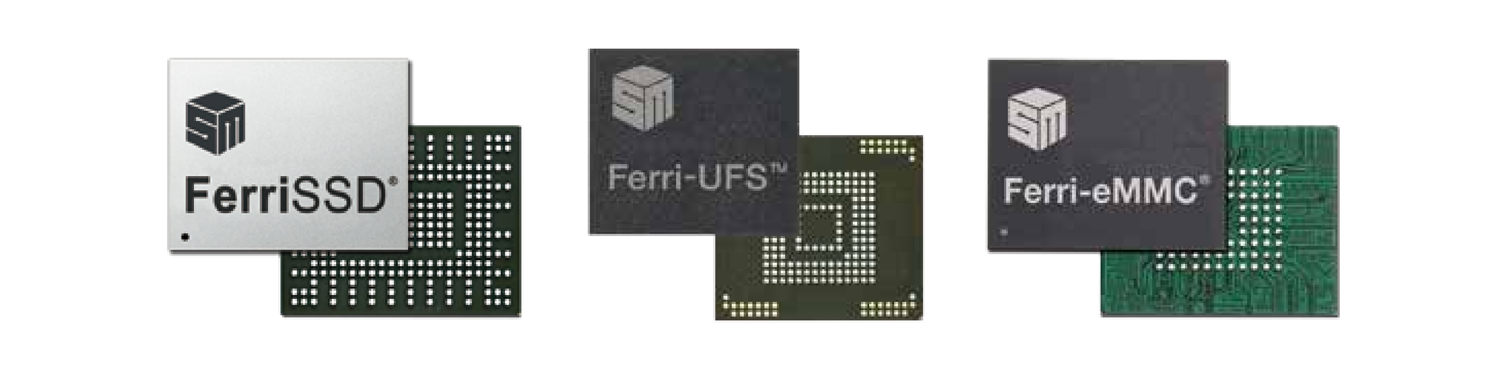 也有多種連線方式選擇,當應用需求是在輕巧而具彈性的外形因素下有快速的存取速度,例如影片儲存等,FerriSSD 則提供 NVMe 1.3、PCIe Gen3、SATA 與 PATA 協定的選項。Ferri-UFS 系列符合最新的 UFS2.1/3.1 規範,提供高效能儲存且低耗電,是相當適合可攜式及電池供電的應用。最後,Ferri-eMMC 系列 完全符合 eMMC 4.5/5.0/5.1 協定的 JEDEC 規範。Ferri-eMMC 採用 100/153-ball BGA 封裝,不只提供高資 料完整性及可靠性,且增進 PCB 設計效率、降低製造成本。