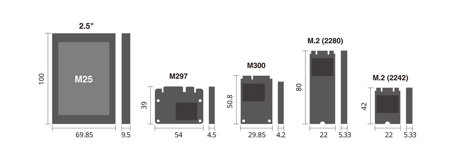 FerriSSD 儲存裝置的韌體還能客製化,以提供每一應用最佳的規格,包含較高的模組擁有先進的控制晶片技術及整合的被動元件,提供較快捷的設計時程。如果選項還不夠的話,那 TBW(寫入總量)以及較佳的顧客體驗。可以安全的方式達到客製化,不管是在本地或遠端,皆提供便利的可升級性、高度可靠性及差異化的零售 儲存解決方案。其他的 FerriSSD 產品有不同的容量及模組型態可供選擇,從M2 規格到 2.5”的標準外形尺寸, 確保設計者永遠有最適當的記憶體解決方案可運用在每個新產品上。在溫度範圍介於 -40°C 到 85°C 的工作環境中,FerriSSD 儲存裝置也能執行最佳作業。使它們能被設計用在戶外環境中,也能使用在像工業冷凍機這樣的應用中。如此大範圍的可作業溫度使得 FerriSSD 裝置適用在小型、無風扇的手持產品中。