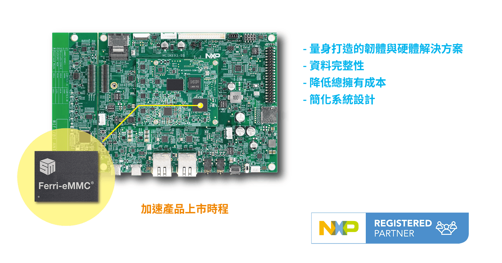 Ferri-eMMC 提供寬溫支援、最高 256GB 容量、超低功耗及卓越的可靠性,專為在嚴苛環境中運行而優化。它為 AI、工業自動化及車用應用等領域,提供具成本效益的低功耗儲存解決方案。