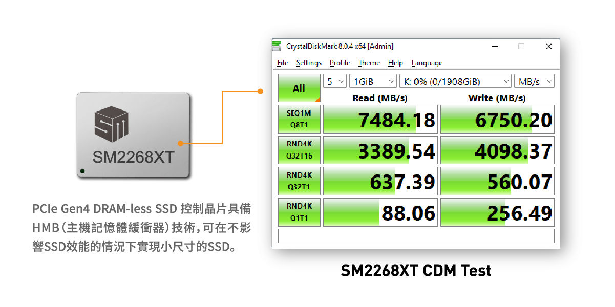 SM2508 是一款高效能、低功耗的 PCIe Gen5 x4 NVMe 2.0 SSD 控制器,專為新世代 AI 筆電與高階消費級裝置設計。採用台積電先進的 6nm 製程技術打造,能在高傳輸量、低延遲與節能需求下,同時展現卓越的效能與效率。
