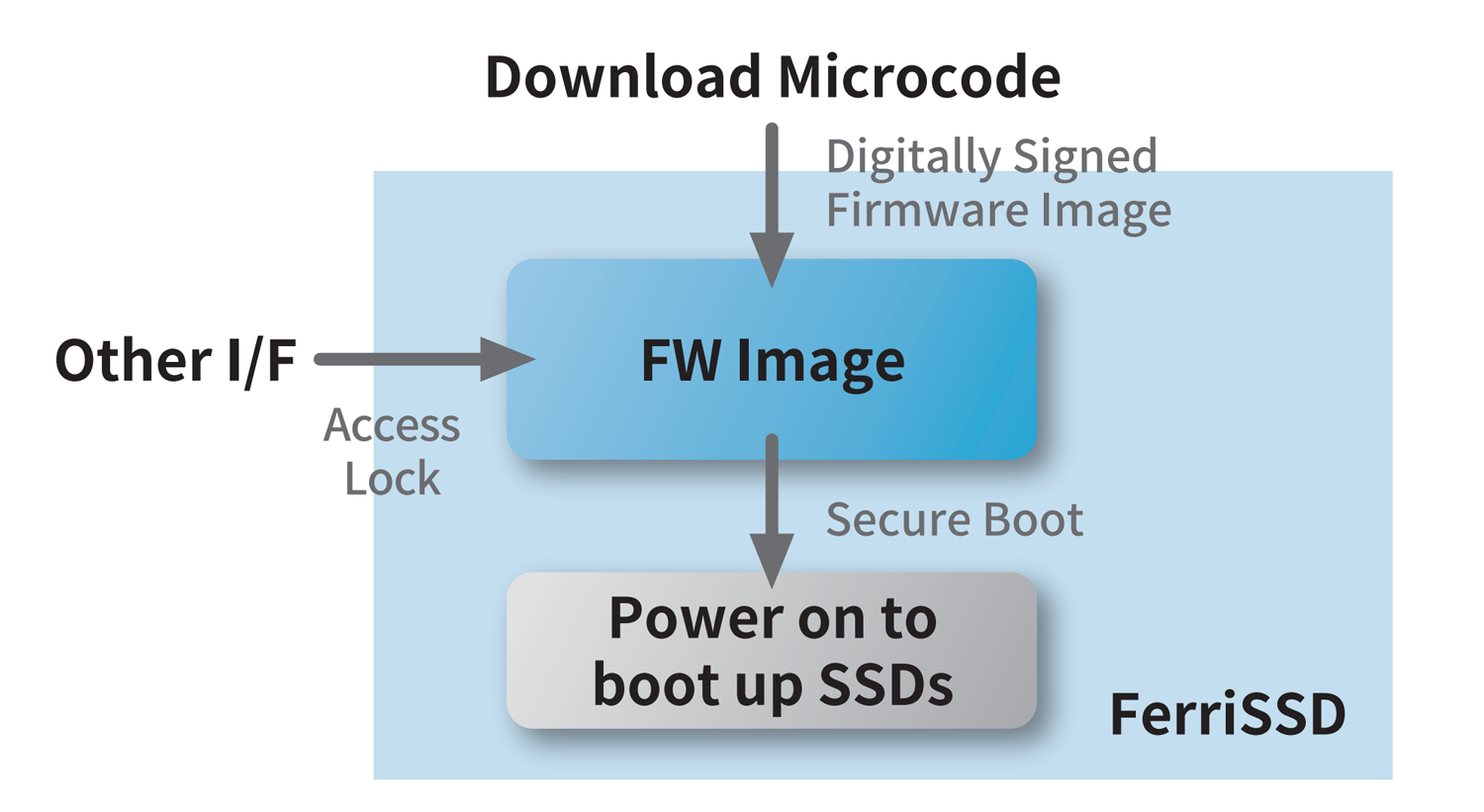 DefendMax's IntelligentGuard™ technology prevents provides enhanced authentication and protection of the FerriSSD firmware to prevent cyber-attacks and thus ensure robust data protection and uncompromised functionality. IntelligentGuard's robust security features include data encryption with authenticated firmware protection (Figure 1).