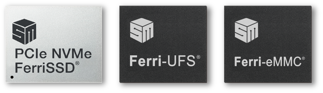Silicon Motion’s Ferri product family provides fully integrated embedded storage solutions, combining a Silicon Motion controller, NAND flash, and firmware into a single compact BGA package. The product line includes FerriSSD®, Ferri-UFS®, and Ferri-eMMC®, each engineered for specific performance and integration needs.