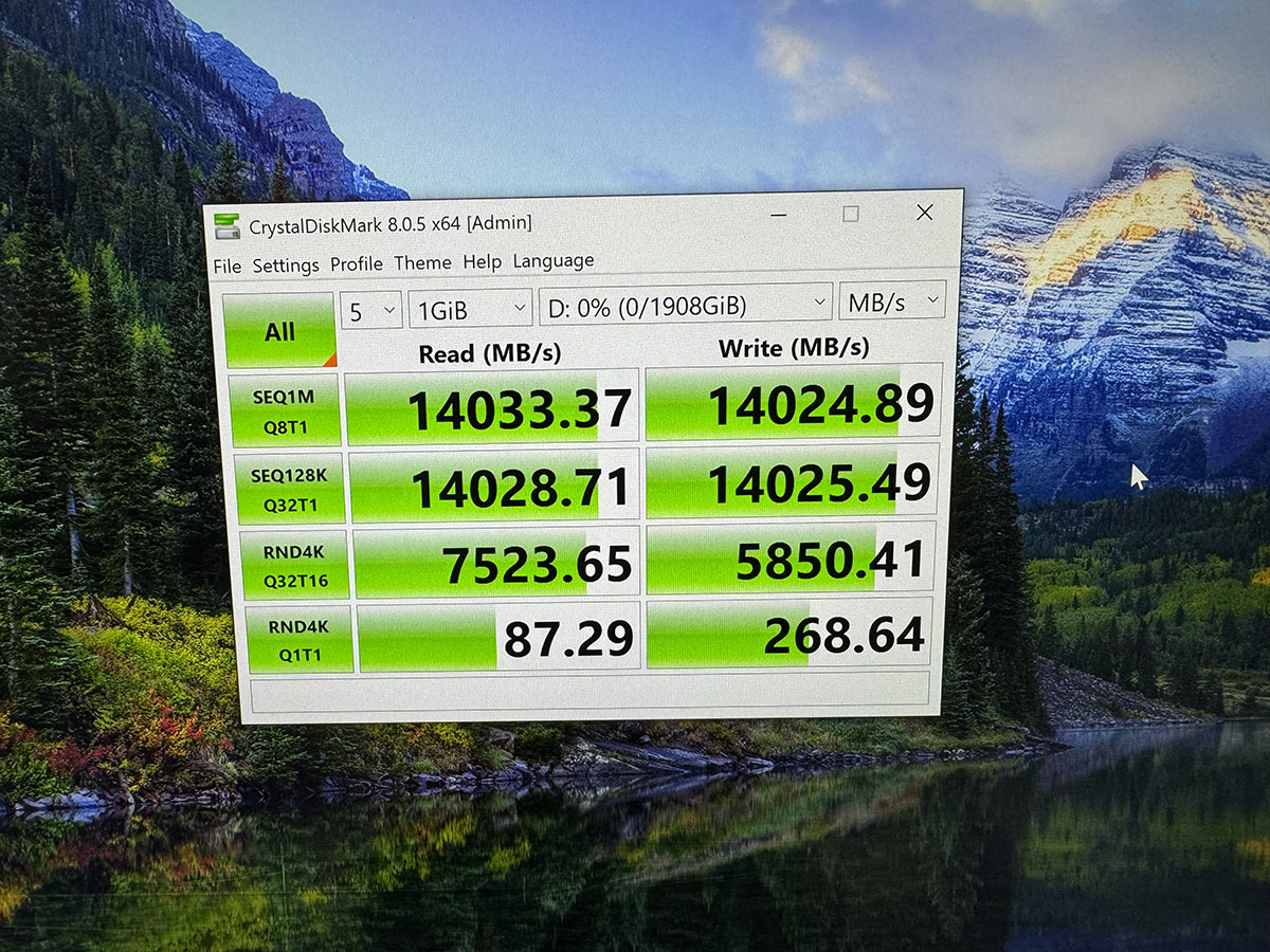 In the live demonstration, the SM2508 impressed with its incredible speed and efficiency, achieving over 14GB/s in both sequential read and write performance as measured by the CrystalDiskMark benchmark.
