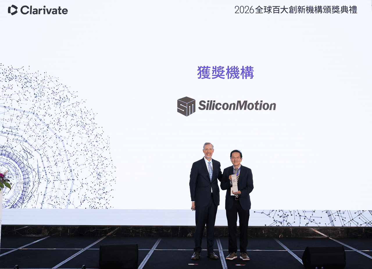 Silicon Motion has been named one of the Clarivate Top 100 Global Innovators 2026, marking a significant milestone in our journey of continuous innovation. This recognition highlights organizations that consistently deliver high-impact inventions and shape the future of technology across industries.