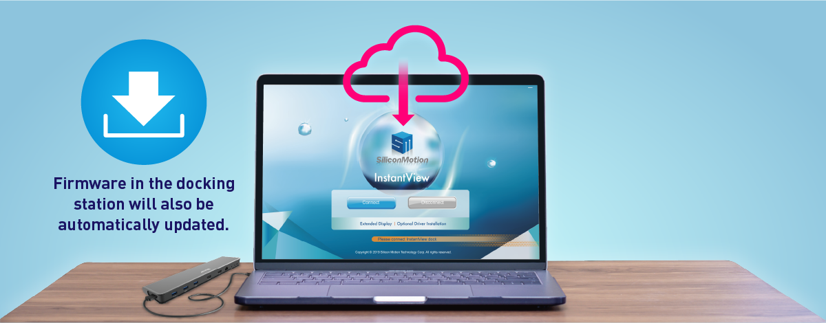 InstantView™ can automatically check for updates. It will update the InstantView™ application and also update the display driver if installed in the system. The firmware in the docking station will also be automatically updated. It maintains your docking station, and always keeps it running at a top condition. Users no longer need to worry about new OS release breaking their docking stations!