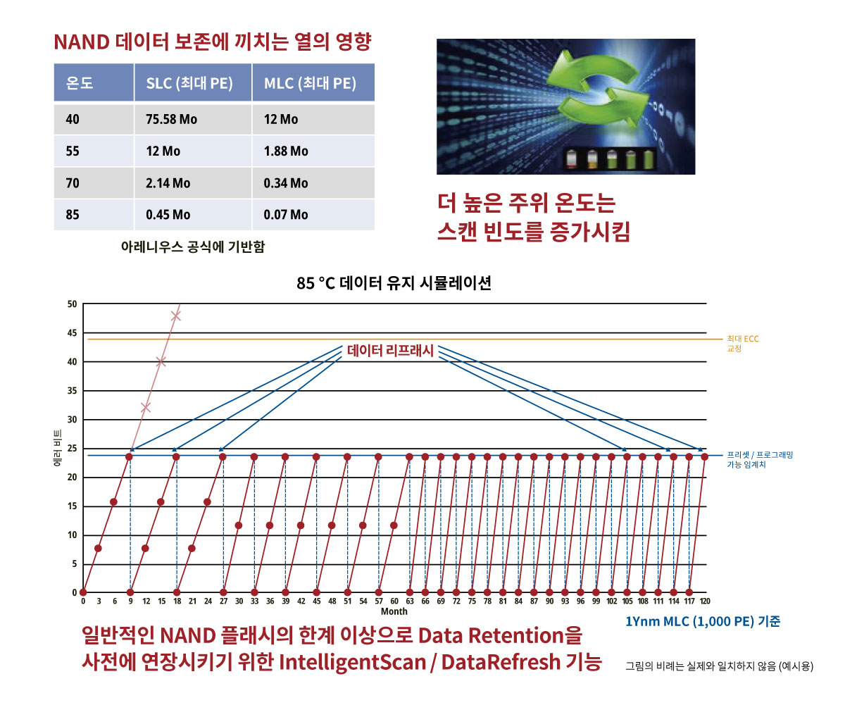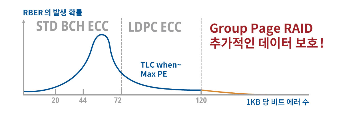 NANDXtend®는 3D NAND SSD를 위한 Silicon Motion의 고급 펌웨어로서, 빠르고 정확한 오류 보정을 위해 LDPC와 RAID 보정을 통합했습니다. 이 기술의 3 레벨 알고리즘은 P/E(program/erase) 사이클의 성능을 높여서, SSD 수명을 연장하고 데이터 무결성을 보장합니다.