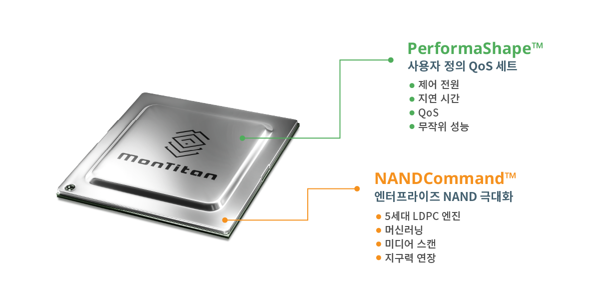 MonTitan™ 플랫폼은 차세대 데이터 센터 및 엔터프라이즈 스토리지 환경에 최적화되어 있으며, 성능, 신뢰성, 보안성 측면에서 최고 수준의 기준을 충족합니다. 또한, 맞춤형 펌웨어 솔루션을 통해 고객이 차별화된 애플리케이션 최적화 SSD 솔루션을 유연하게 개발할 수 있도록 지원합니다.
